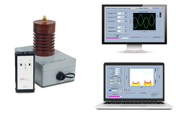 The PDTech DELTAMAXX system measures current through a reference capacitor and test object. The current is measured by the voltage drop across shunt resistors. A 16-bit A/D converter processes these voltages. The phase angle difference between the high voltage and this current is determined by a novel algorithm, which allows the calculation of the loss angle and automatic elimination of several potential error sources.
